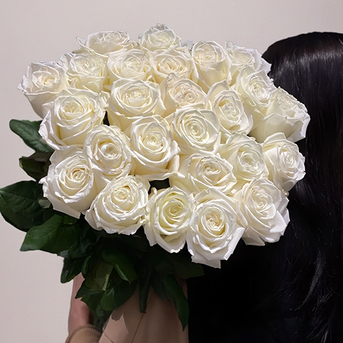 Монобукет из 25 белоснежных роз Эквадор Плая Бланка (60 см)
